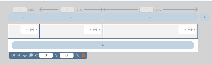 Drag - drop the necessary widgets inside the cells, on the green background that appears the moment the widget hovers over the cell's borders.