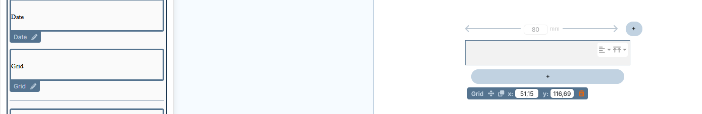 When the grid is located in the header or footer area (and not on a title page), column widths can be defined either in millimeters