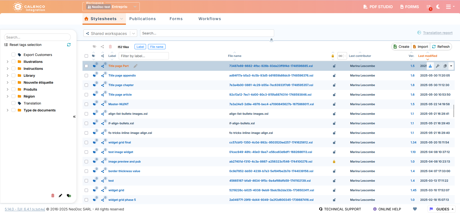 To open a stylesheet created in the PDF studio, click its label or name.