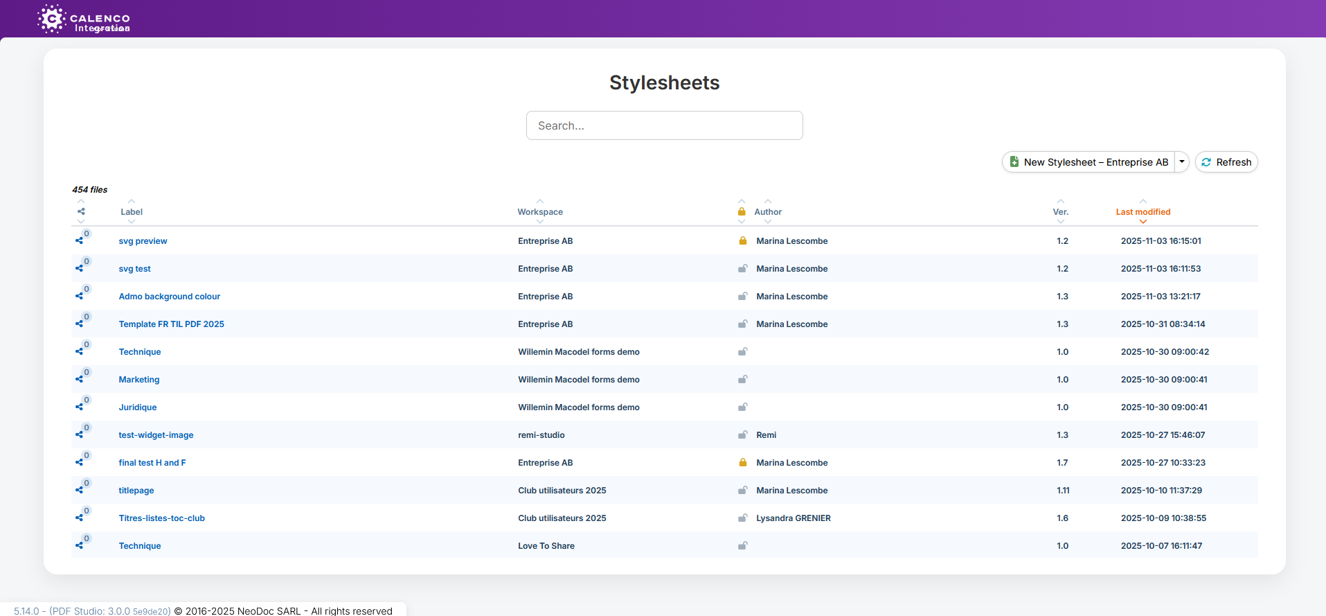 style sheets created by the Calenco development team (dark blue color for their label and filename);