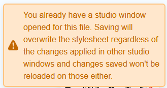 Each opening or creation of a style sheet is equal to a session of the PDF studio specific to each style sheet. The same file cannot be opened in different windows by the same user. This action is indicated by the following notification: ![]() |